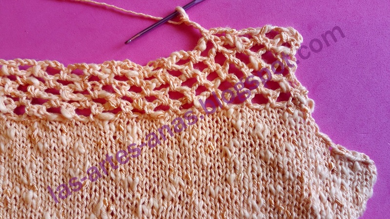 TOP DE VERANO, mezclando 2 técnicas, punto jersey a 2 agujas y red a crochet