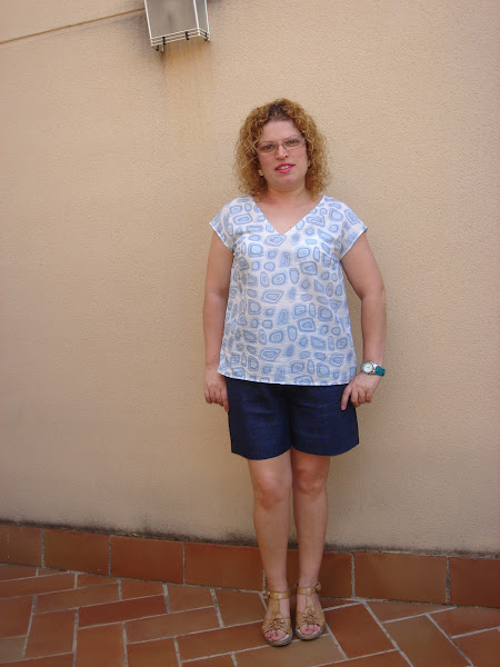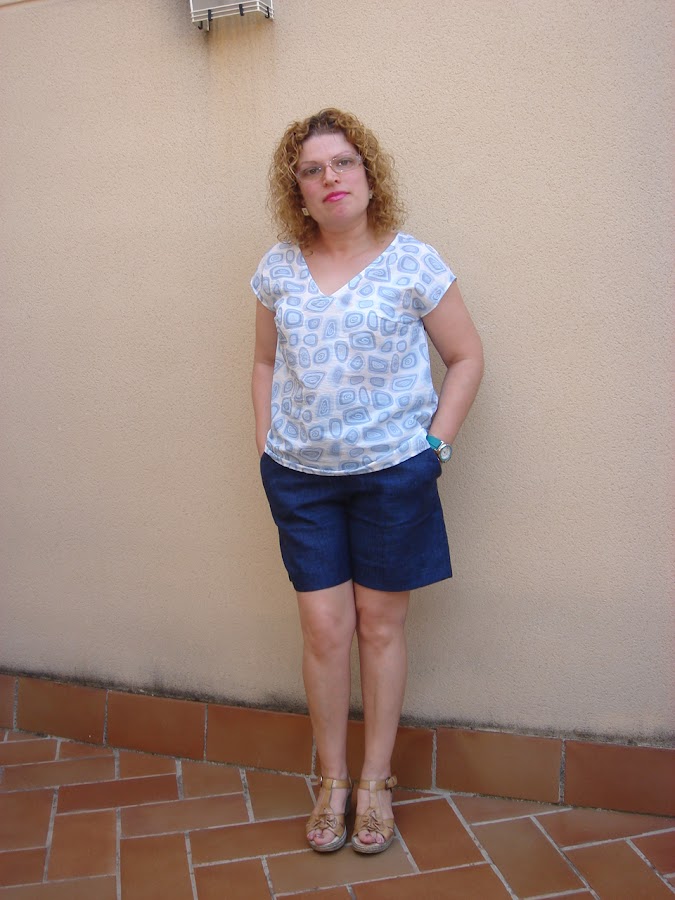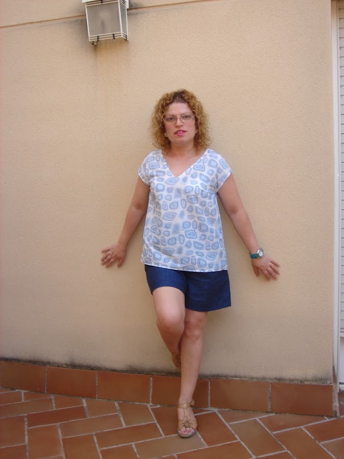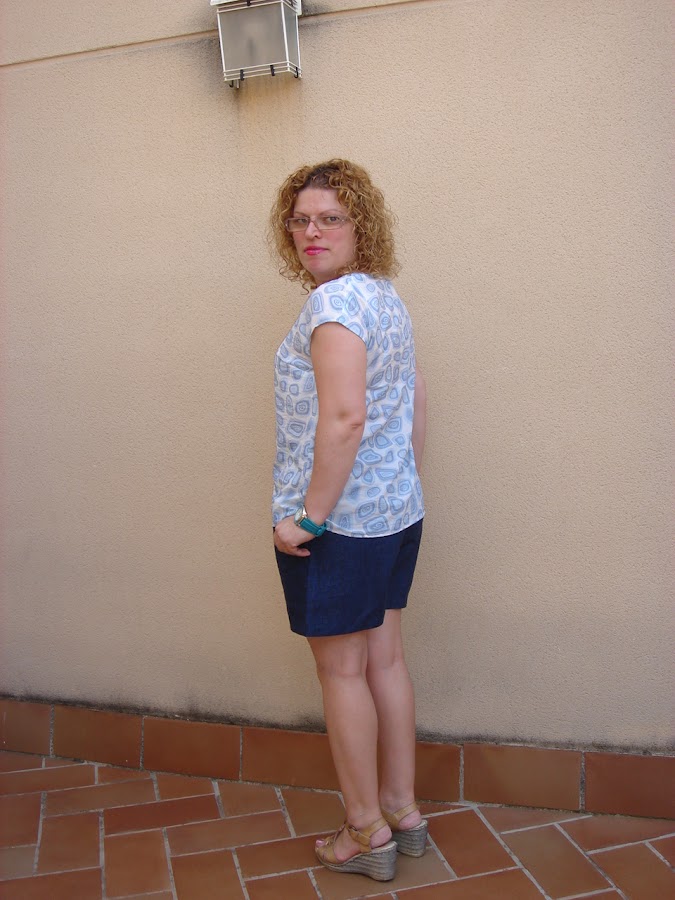 El azul claro de la blusa combina muy bien con los shorts de lino de color azul que hize AQUI