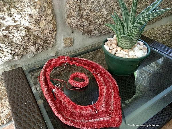 Empecé de nuevo, pero en lugar de hacerlo por abajo, como decía el patrón, monté los puntos del escote y empecé por arriba haciendo aumentos en el centro del delantero y la espalda para dar forma al top. Tejí por separado delantero y espalda hasta la altura de la sisa y a partir de ahí los uní y seguí tejiendo en redondo hasta el final. Ahora sí quedaba como a mí me gusta.
