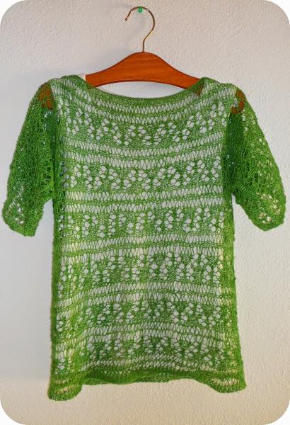 Así que empecé desde arriba haciendo dos partes (espalda y delantero) que incluían el cuerpo y las mangas y después cerré en circular para tejer el cuerpo. Acabé cuando se acabó el hilo porque sólo utilicé una madeja. Este hilo prometía, pero al final , ha resultado muy antipático de tejer y el resultado no me entusiasma porque suelta como una pelusilla que como lleves un pantalón negro, ni te cuento.