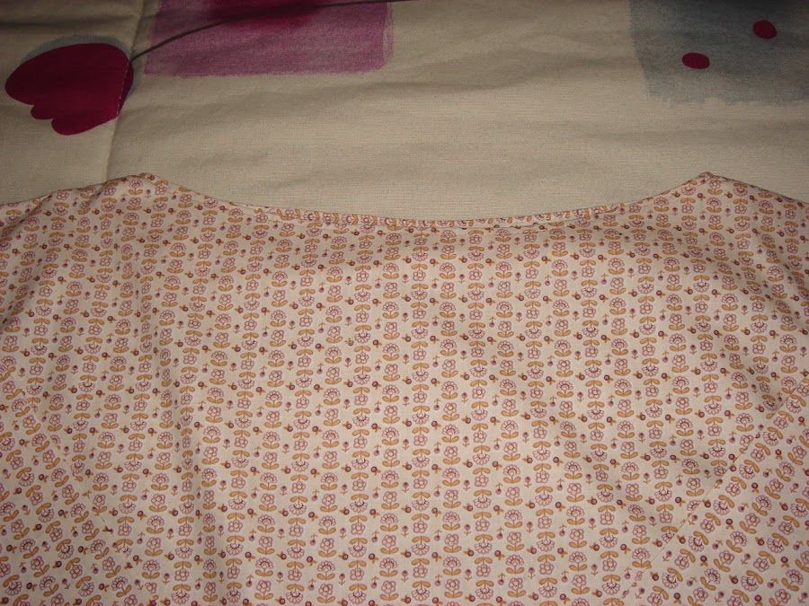 El cuello es de escote barco, aqui se aprecia bien las florecitas de la tela.
