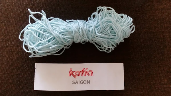 - Hilo acorde con la aguja (100% algodón es recomendable.Aunque en mi caso he utilizado un acrílico de verano de katia que es una maravilla. Un color precioso,creo que es aguamarina,no pesa nada y no se engancha nunca,un descubrimiento.(dejo foto)