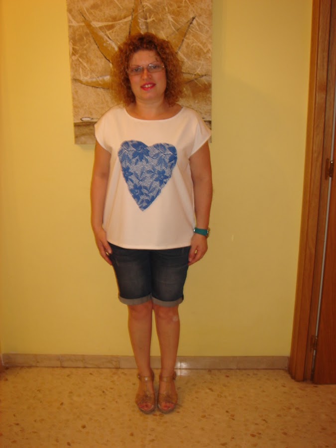 Esta version es de punto elastico de color blanco con aplique de guipur de color azul electrico , el paso a paso para hacer el aplique lo podeis ver aqui COMO HACER UN APLIQUE