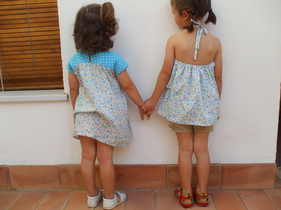 Patrón: El top es el ruffled halter top de Oliver and S, y los pantalones son de Puppet Show Shorts, también de Oliver and S.