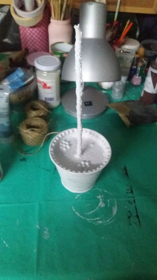 Lo había usado en otro trabajo anterior, por eso ya estaba pintado en blanco y tenía a todo alrededor unas perlitas y también en el centro. Quitarlas me costo bastante, estaban bien pegadas, jajajaj!!