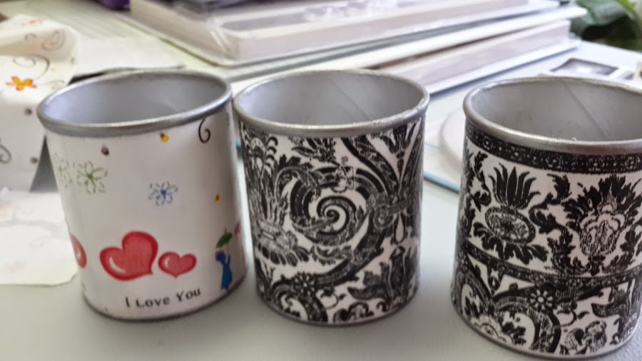 escogemos la servilleta y la cortamos al tamaño del alto del tarro, y la pegamos utilizando el pegamento para servilletas, recuerda que no se debe adicionar mucho para evitar los grumos o imperfecciones en la servilleta