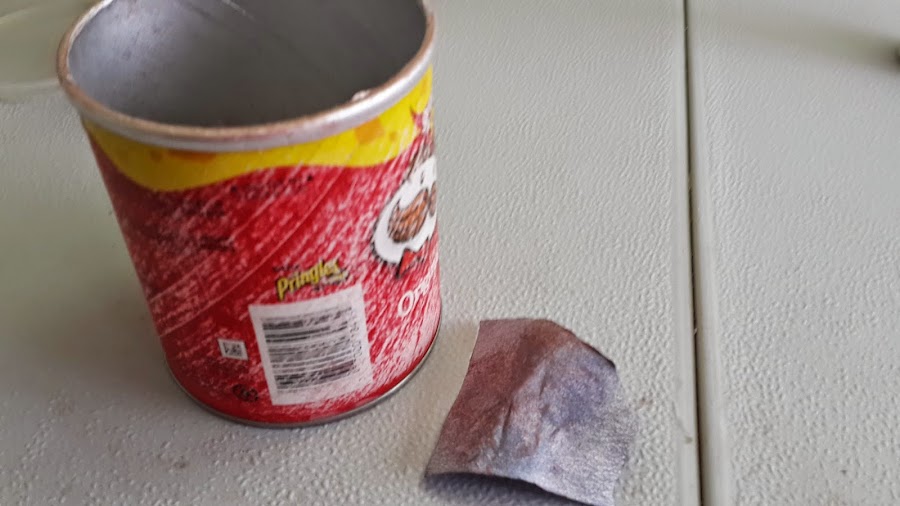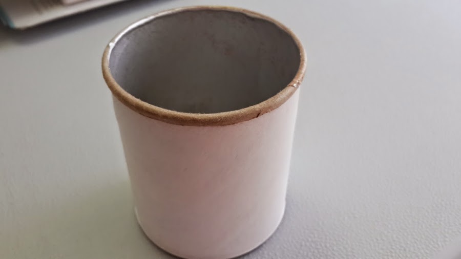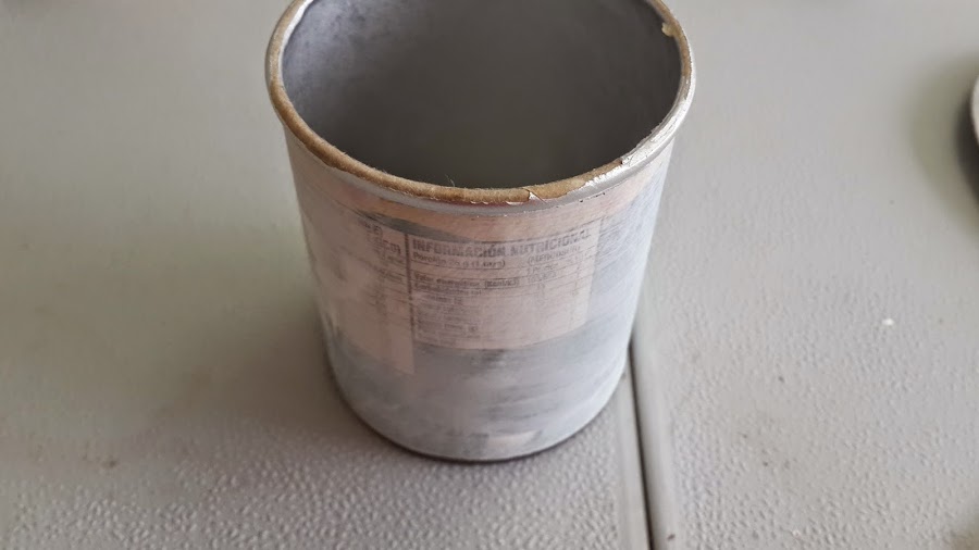 Tomamos el envase reciclable y lo limpiamos bien, luego lo lijamos para que la pintura se adhiera a la superficie.