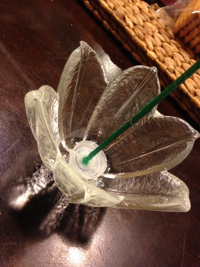 Luego pegamos la tapita al florero.