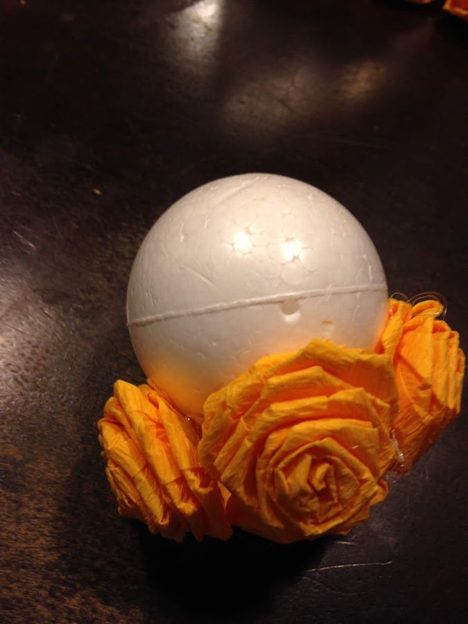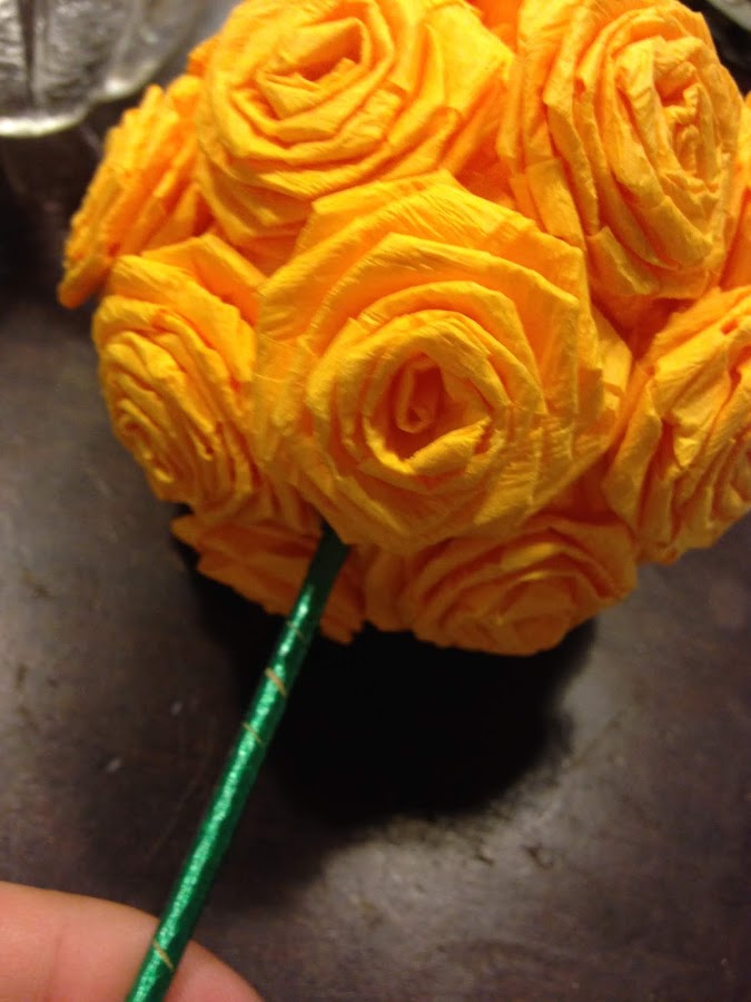 Pegamos todas las rosas a la bola de tergopol.