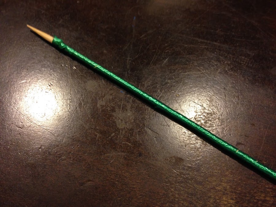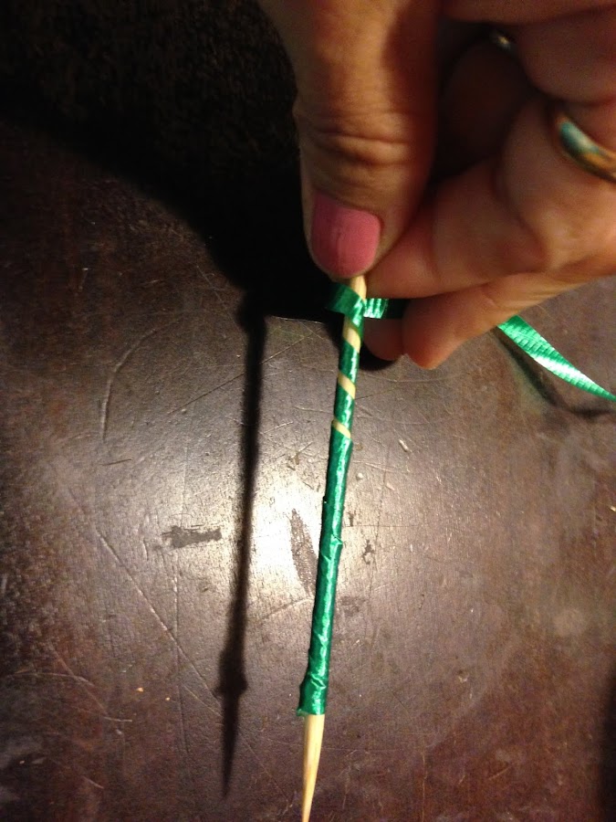 Luego forramos el palito con la cinta para moño.