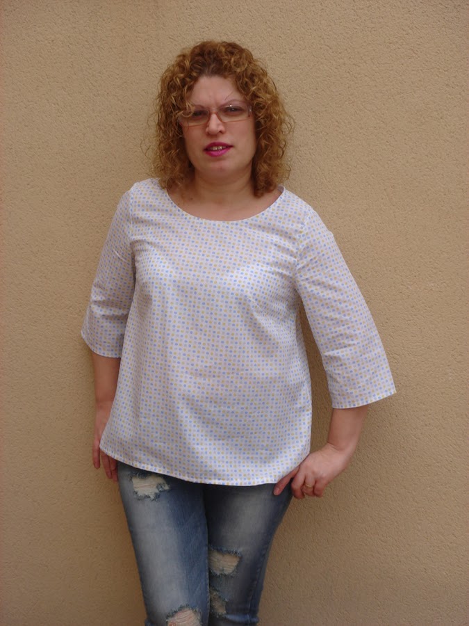 Ya estoy en modo primavera costurilmente hablando y para empezar esta blusita con estampado de topitos de colores.