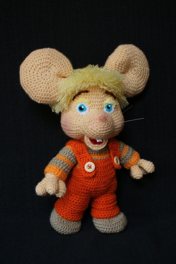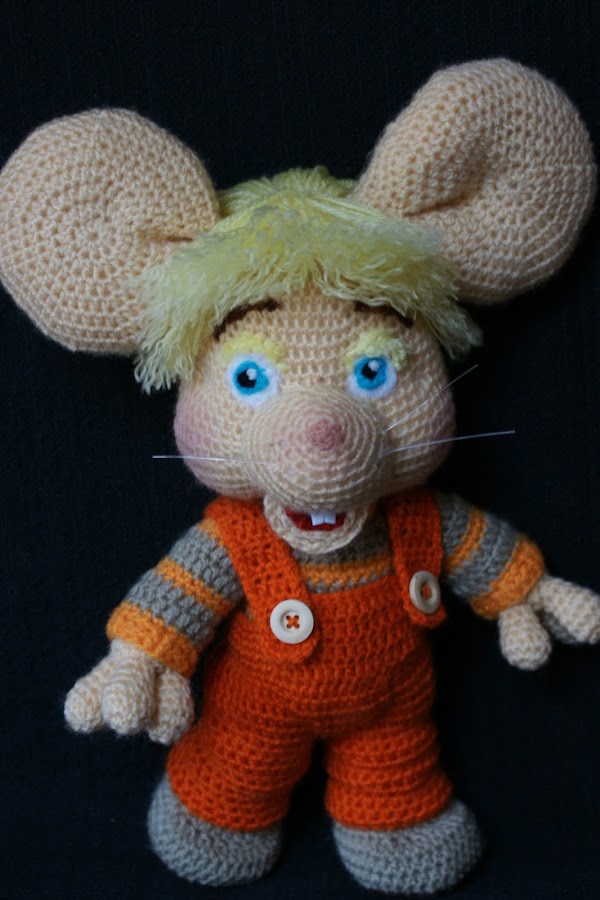 Se trata de Topo Gigio, como no, en su versión amigurumi; personaje creado por María Perego; su primera aparición en la televisión fué en el programa italiano Canzonissima. En estas apariciones nuestro pequeño Topo Gigio nos deleitaba con bonitas historias y cantaba canciones.