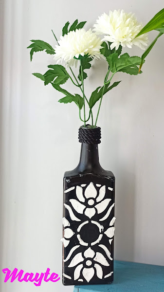 etiqueta, la quité y me limité a ponerle un stencil relieve.
