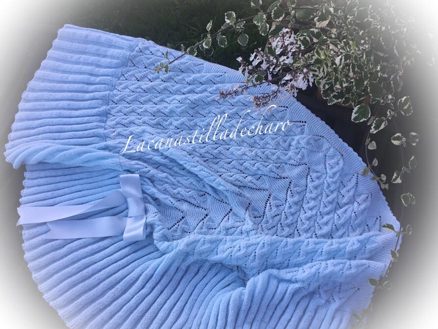 Versión toquilla conchitas, en lana bebe azul