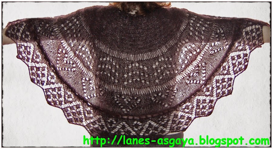 Y, para remate, la puntilla que ella eligió, tejida aparte (que me dio más trabajo ella sola que el resto de la toquilla)