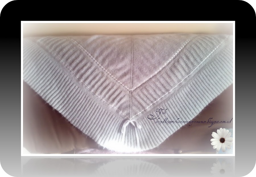 Os presento algo que por fin termine, es una toquilla en color gris perla con adornos en blanco porque aun no tiene destinatari@. Es para la colección personal de mi amiga Tere.