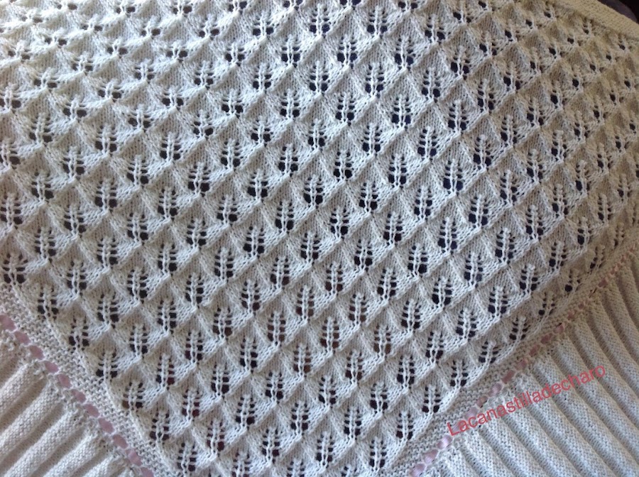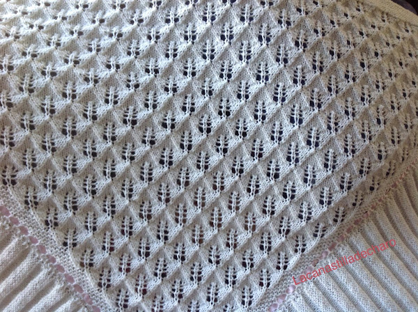 TOQUILLA BEBE LUKA (Punto garbanzo) Una toquilla para bebe a punto garbanzo y en pico. Tejida con calidad MIMO de Oso blanco y agujas nº 3 Cuerpo de la toquilla en pico a punto garbanzo, con un resul ...