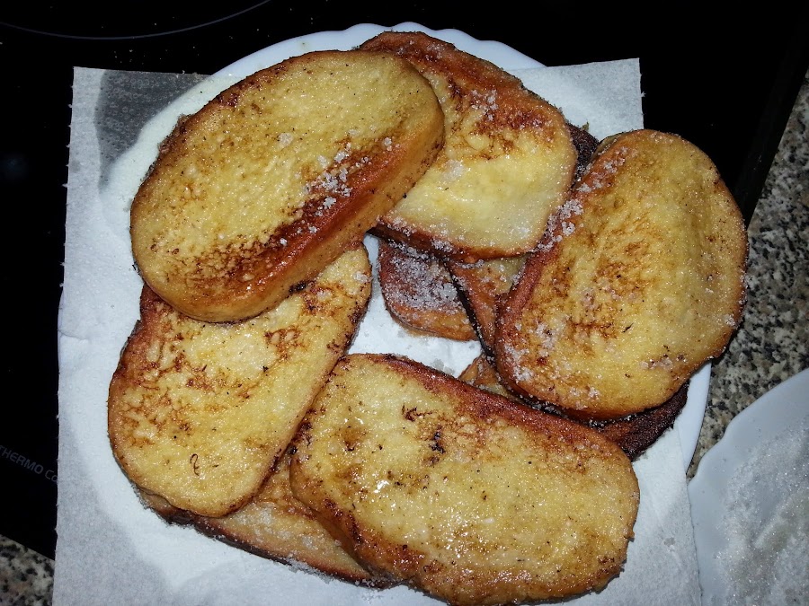 Pero antes de nada, ¿sabéis por qué se come torrijas en estas fechas? Pues parece ser que en tiempos la gente realizaba siempre la misma cantidad de pan al día, fuera la fecha que fuera, pero como en Cuaresma, al no comer carne, comían menos pan... pues tenían excedentes de éste y por ello en Semana Santa hacían torrijicas para consumirlo. Y ya se ha quedado como tradición.