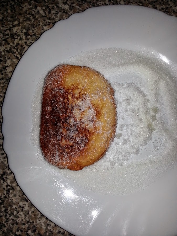 Cuando consideréis que están lo suficientemente doradas, al gusto... las retiráis del aceite y las untáis en azúcar (lo mejor es poner un plato con el fondo de azúcar y rebozarlas)