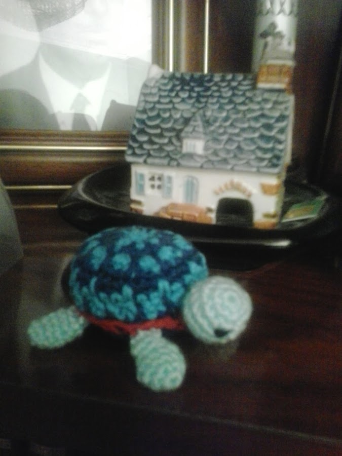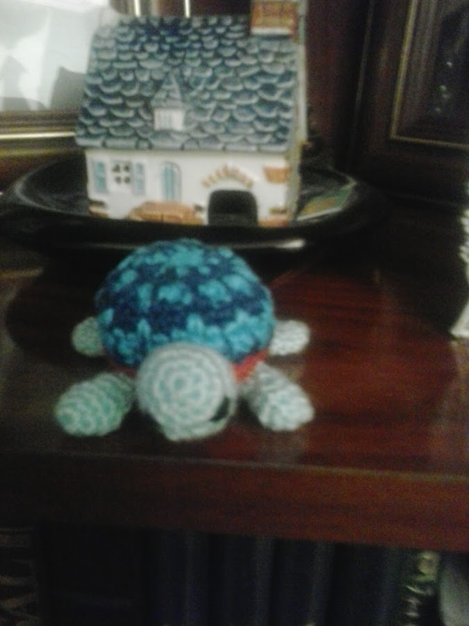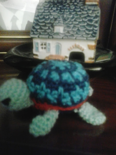 Hace unos años, unos 20 nada menos, le regalaron a mi hermana una tortuga de agua. Petronila, familiarmente "la Petro", se quedó con nosotros hasta que se caso mi hermana y se la llevó a su nueva casa. Al nacer las niñas fue un juguete más al que cuidaban con cariño, incluso viajo a la nueva ciudad donde viven ahora. Recuerdo que en una de las visitas que les hice me la traje de regreso ¡¡¡en el autobús!!!, casi cuatro horas de viaje pero lo aguantó como una campeona. Finalmente la adoptó un compañero mío de trabajo que tenía un precioso jardín donde pudo vivir libremente y muy bien cuidada. La Petro era muy "parrandera" cuando menos lo esperábamos saltaba de su pecera y se dedicaba a explorar la casa, aunque casi siempre terminaba detrás del sofá muy acurrucadita en la pared, pero el susto nos lo daba. Hace algunos meses me decidí ha hacer una Petro pero en azul, mi hermana ya me la ha pedido pero le he dicho que ésta es para mí porque las otras dos anteriores ya tienen otro dueño, una de las nuevas dueñas es una de sus hijas, es decir, mi sobrina pequeña, así que ésta de momento es para mí. Tachannnnn, os presento a la nueva Petronila