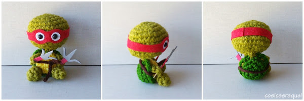 Que emoción! por fin tengo a todas las Tortugas Ninja terminadas y puedo enseñártelas y compartir el patrón en el blog , el patrón original lo tienes gratis en ravelry en inglés está diseñado por Josephine Wu te dejo aquí el enlace Baby Ninja Turtles .