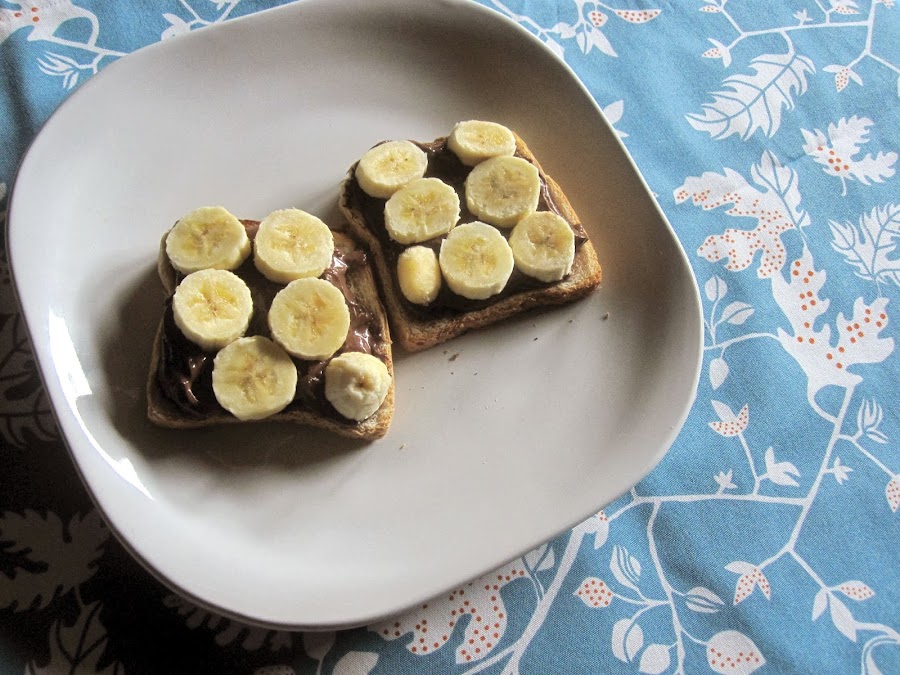 He seguido la receta de Nocilla Dukan que os he mencionado antes al pie de la letra pero utilizando azúcar en vez de edulcorante y leche entera porque me gusta más. Lo he extendido en una tostada y he cortado unas rodajas de plátano. Recomiendo que, antes de ponernos a disfrutarlo, lavemos el recipiente donde hemos fabricado la Nutella, ya que luego es difícil de limpiar una vez seco. Y sin más, ya podemos disfrutar de nuestro desayuno sano sanote.