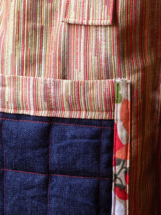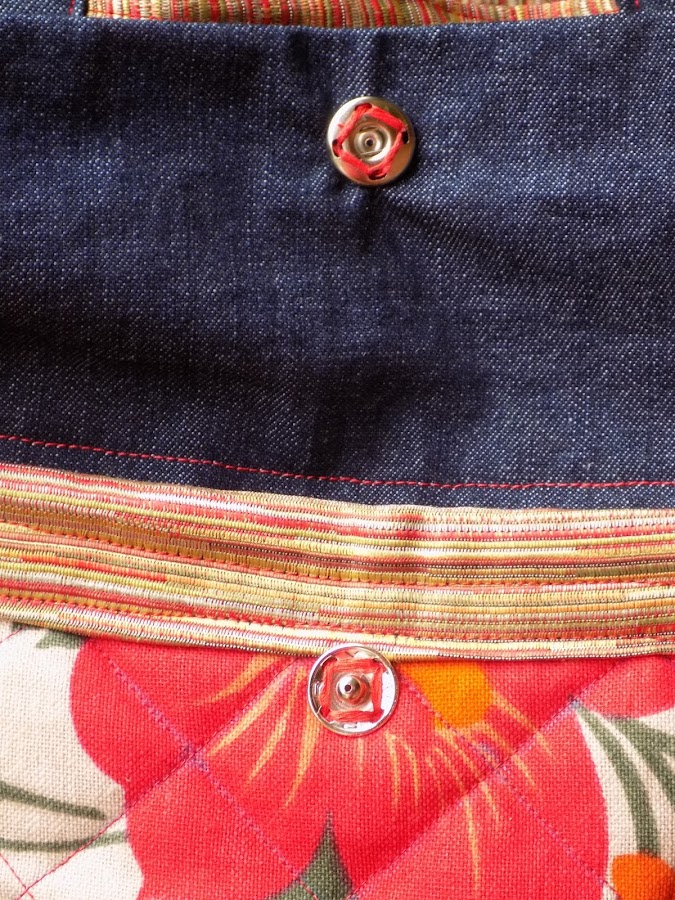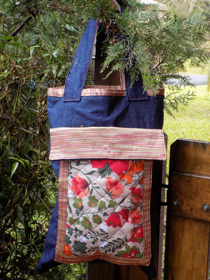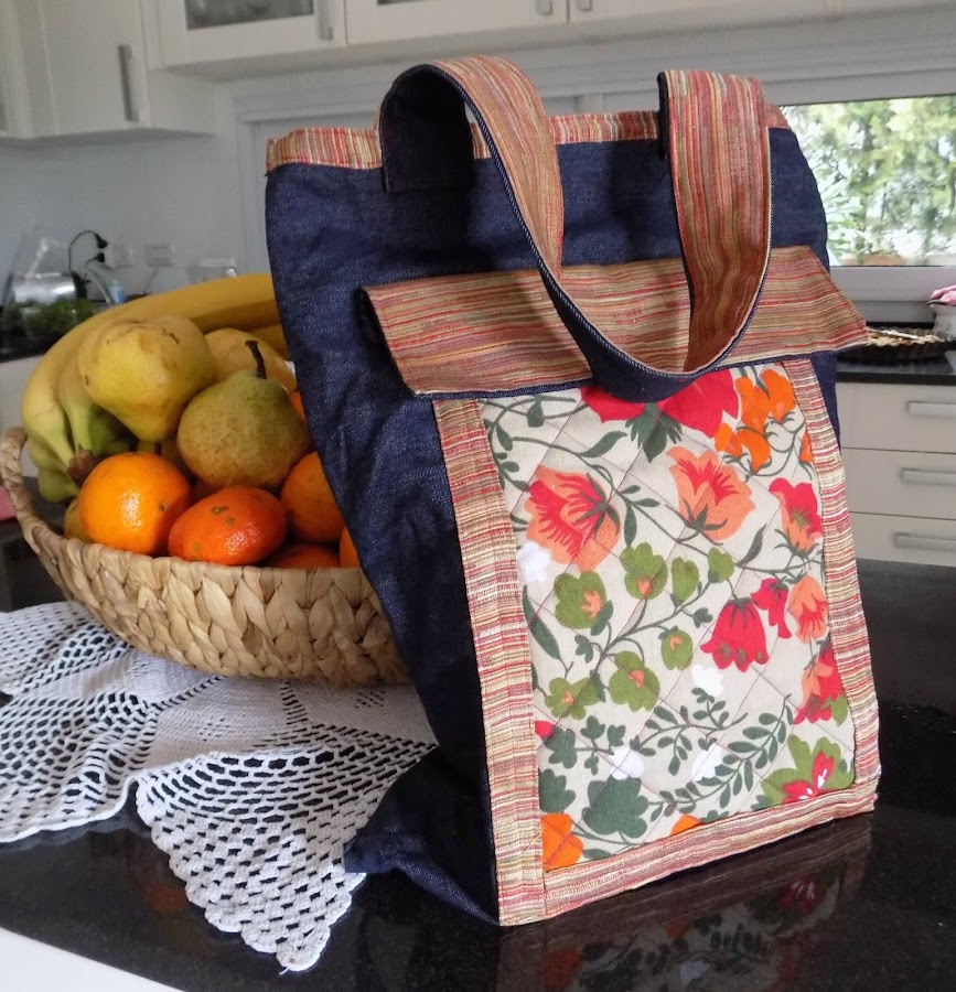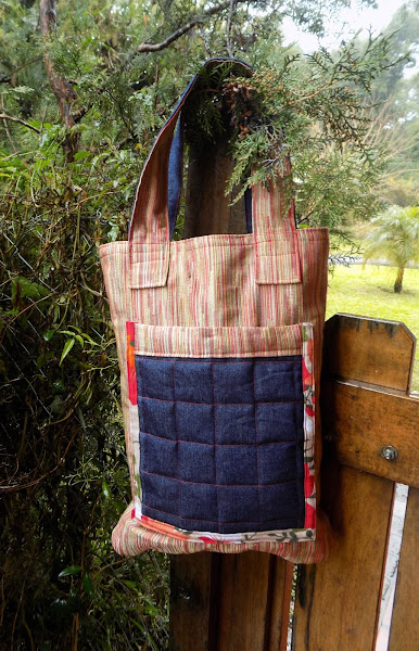 Una tote o bolsa cosida en patchcord REVERSIBLE.