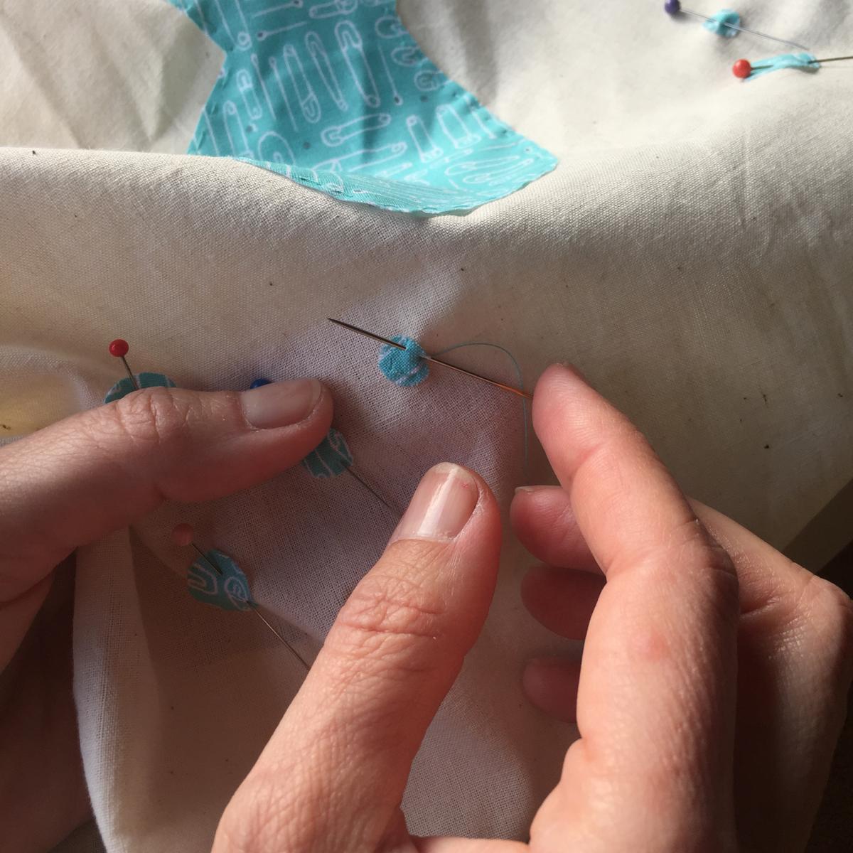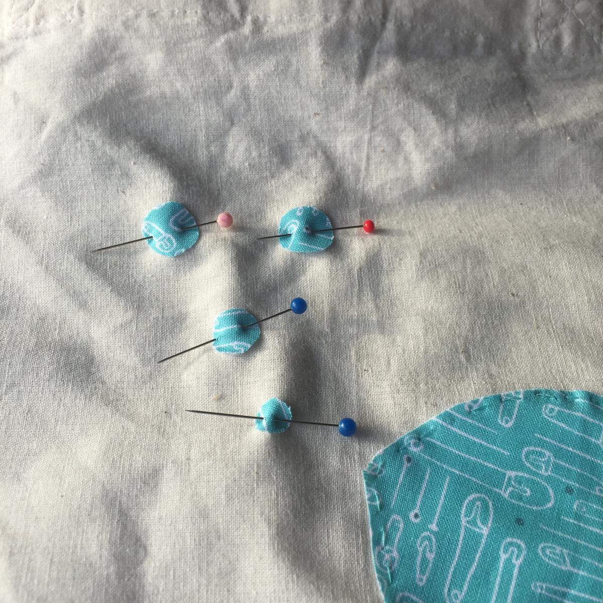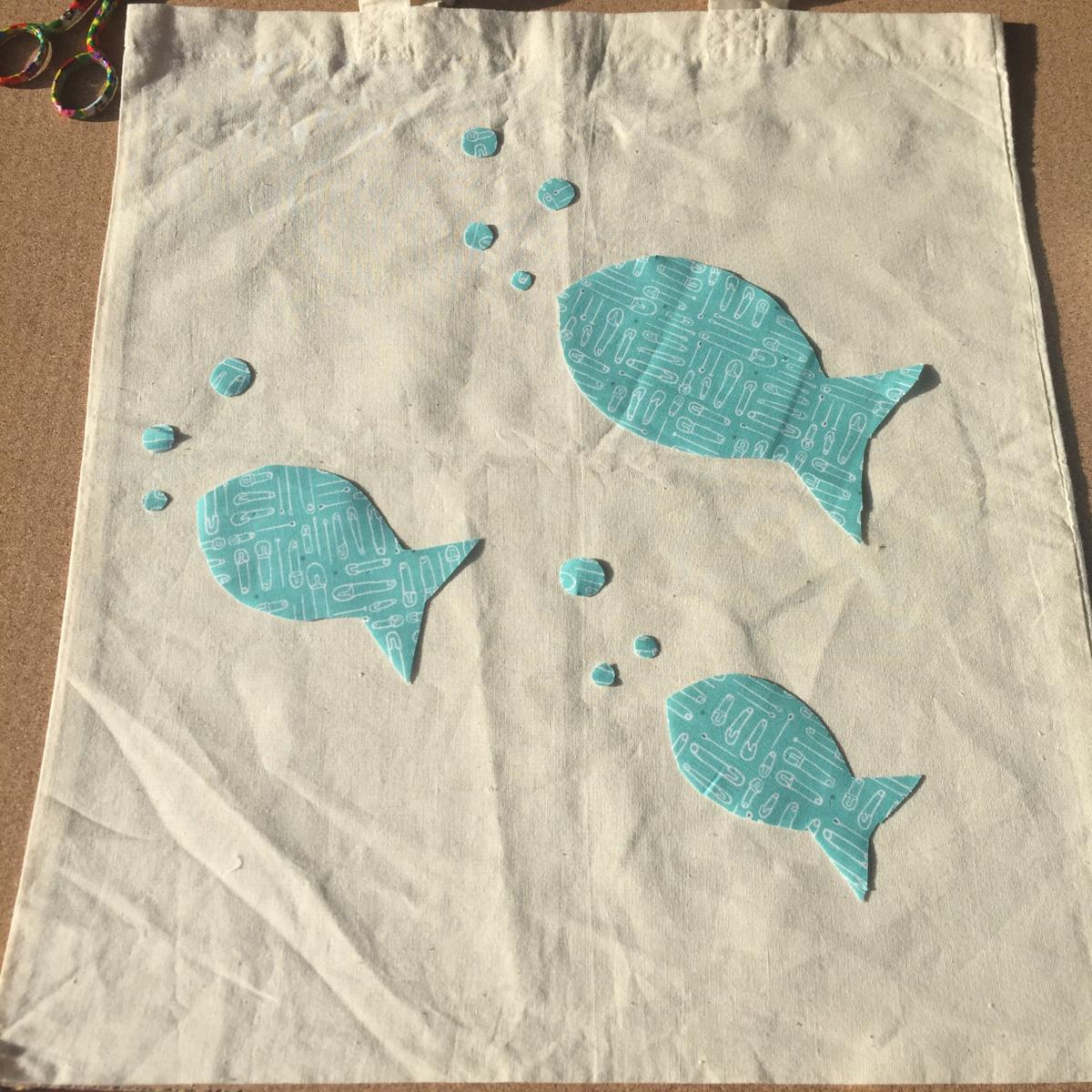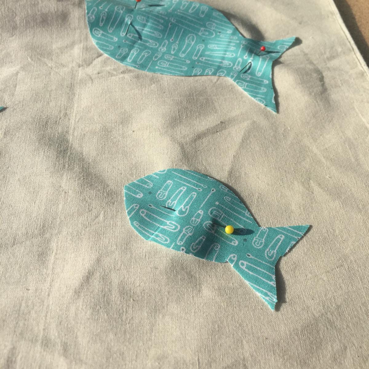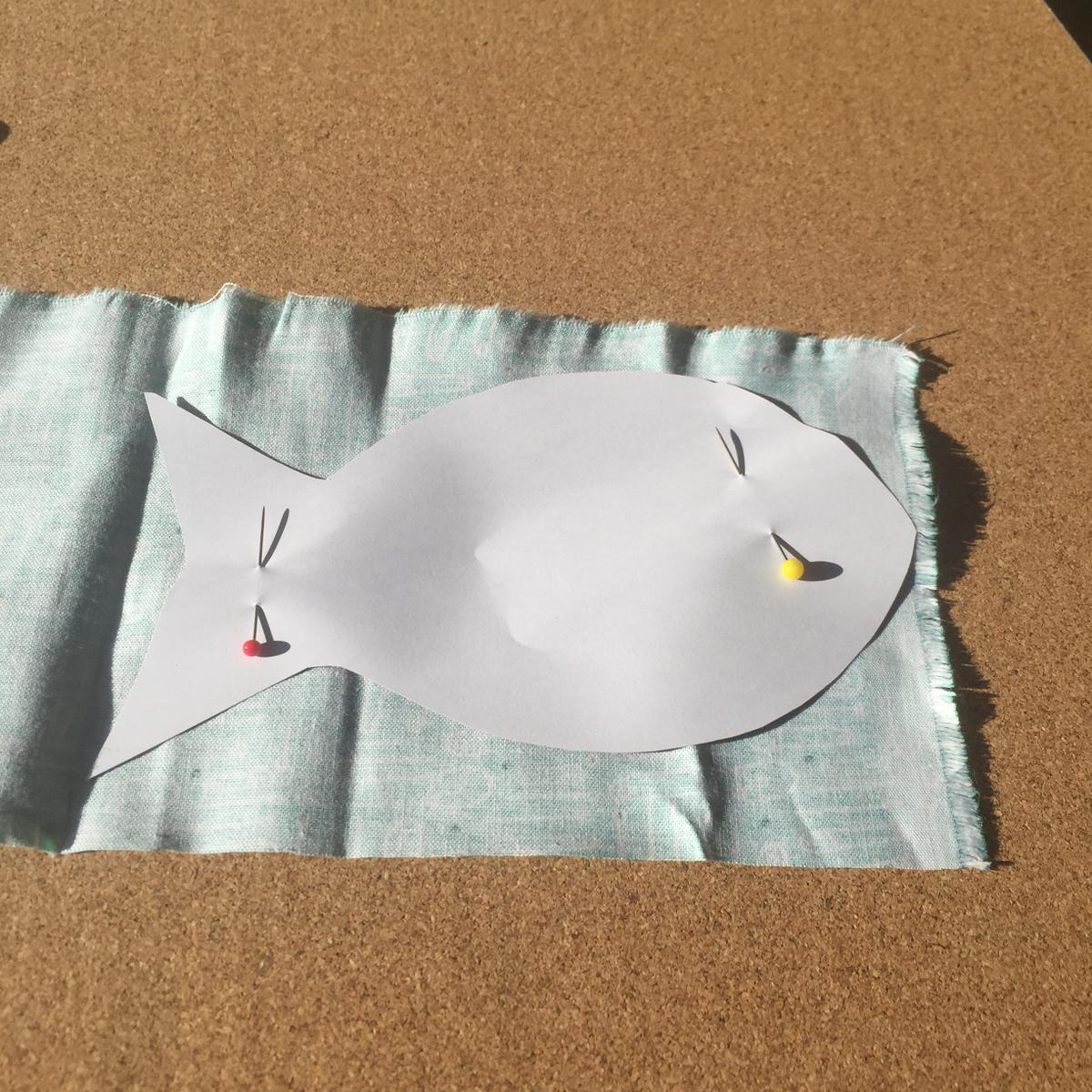 Colocamos los peces sobre la bolsa con ayuda de unos alfileres.