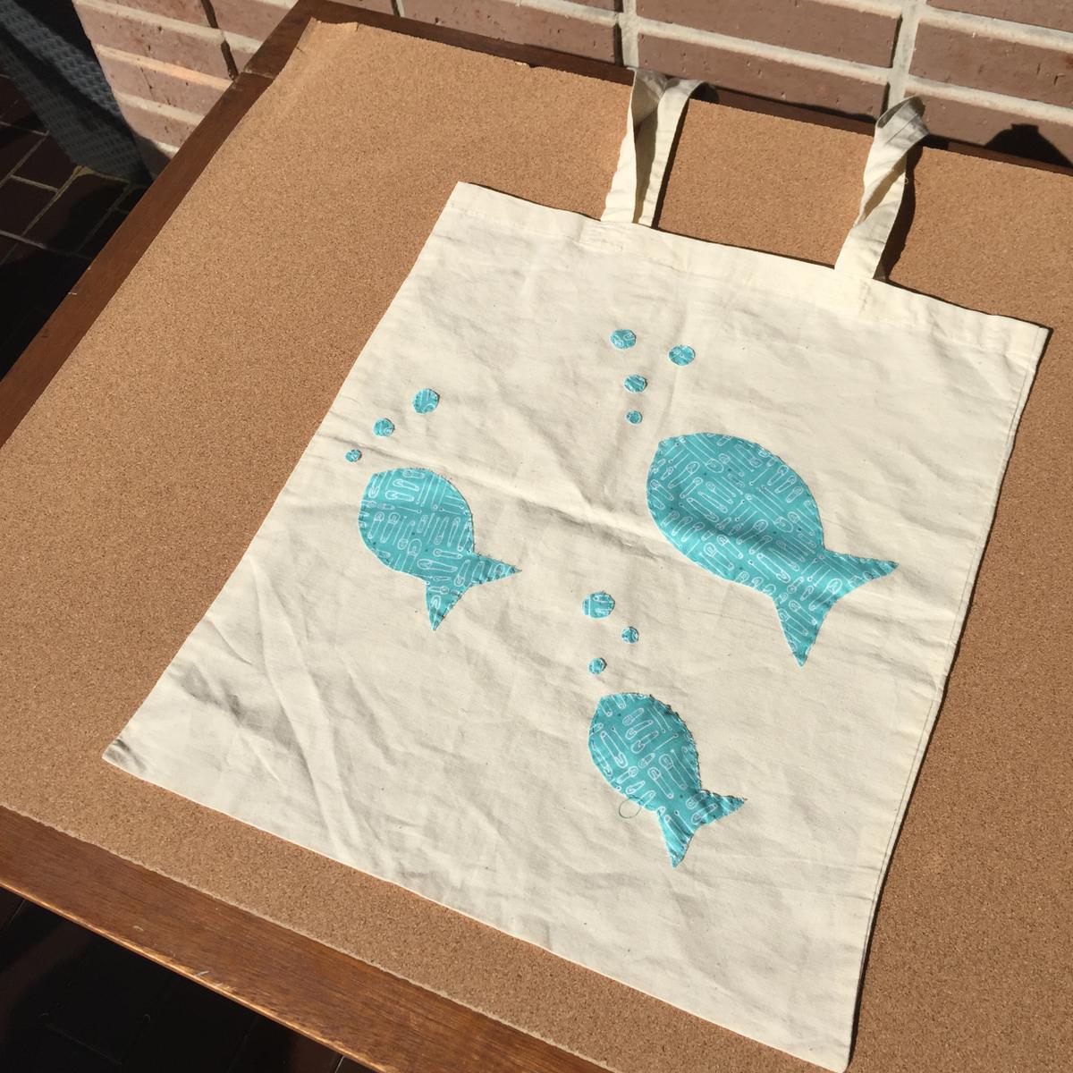 Para finalizar cosemos los peces y las burbujas a la bolsa.