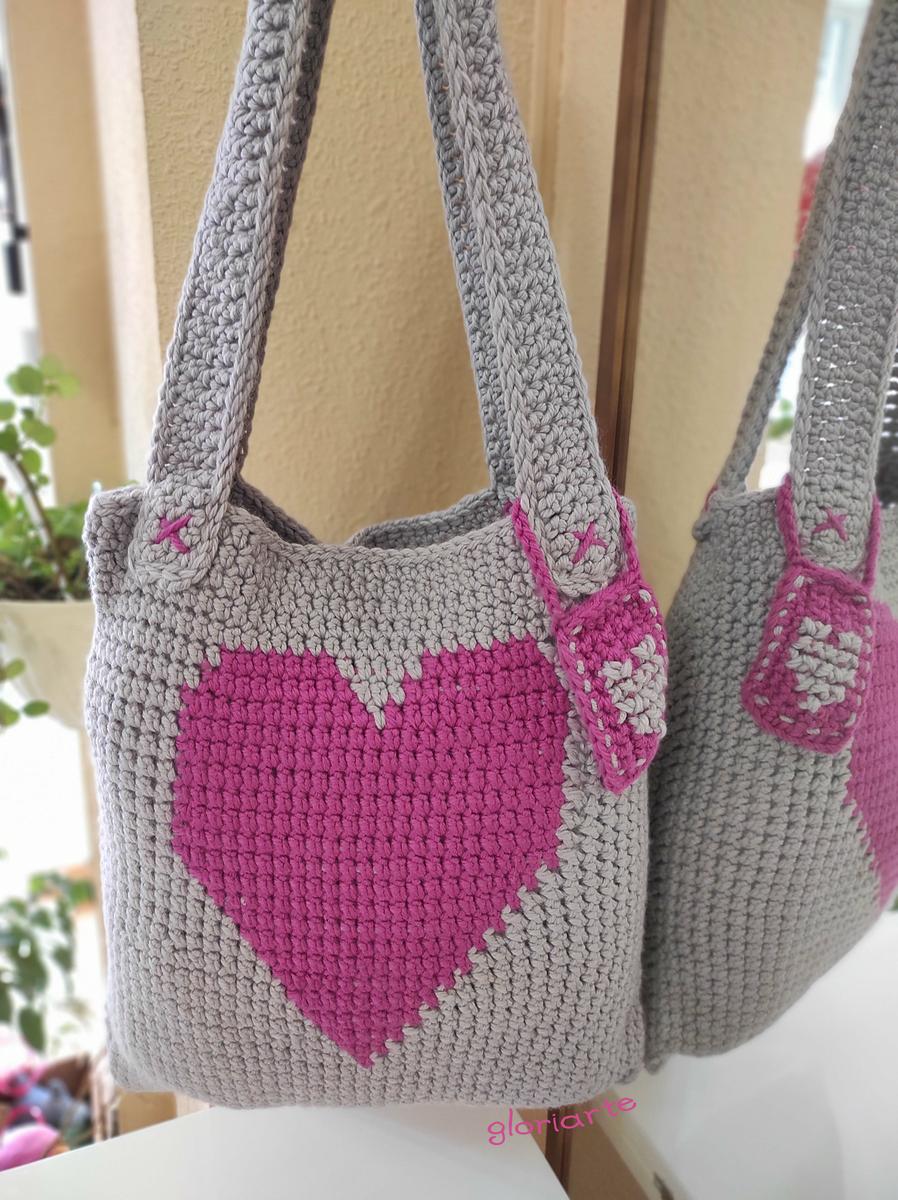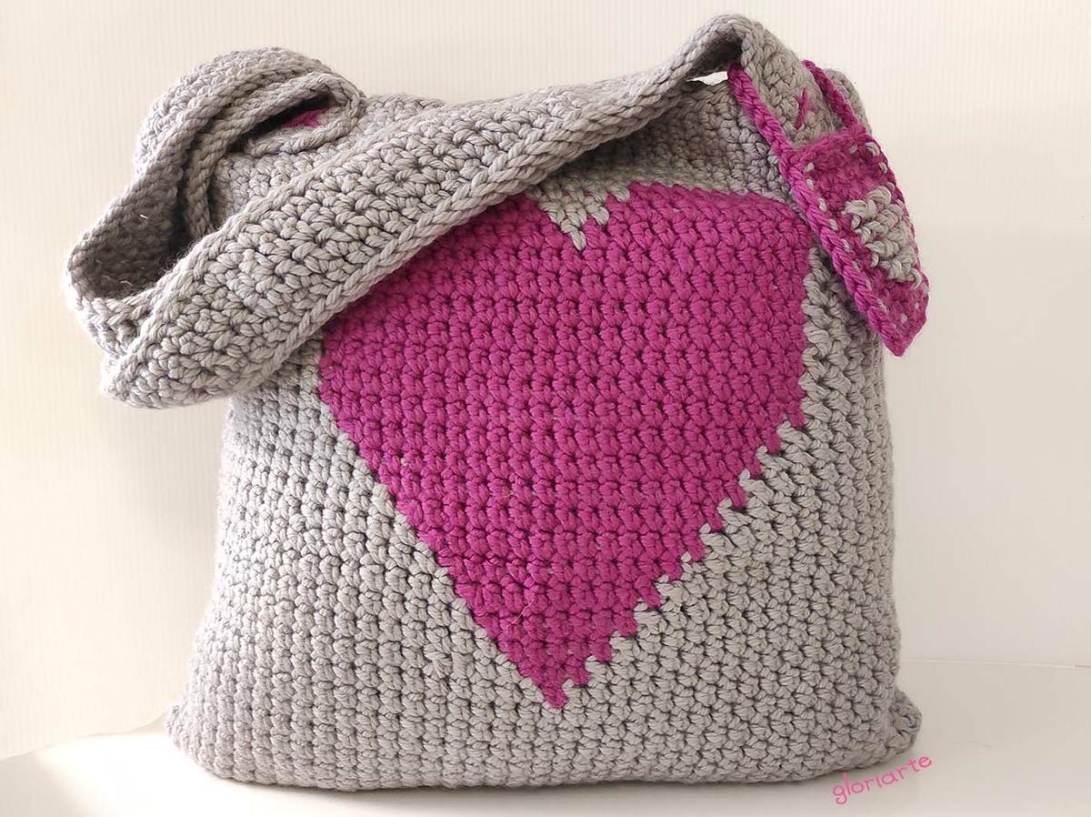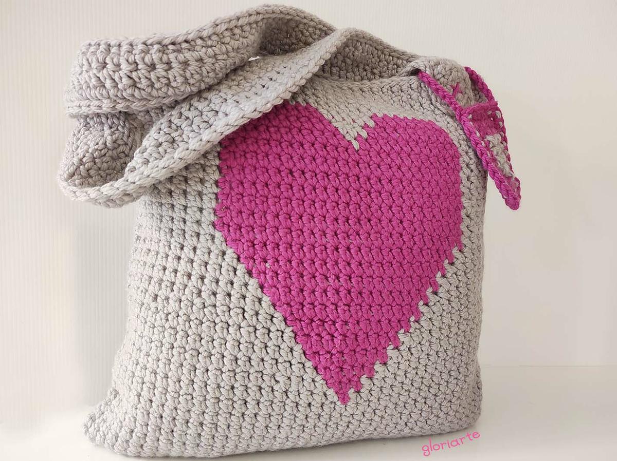 ¡Lo que me gusta a mí un corazón! Pues ala, uno bien grande en todo el medio de mi tote bag crochetera, jajaja. Para lucirlo y que se vea bien, oye