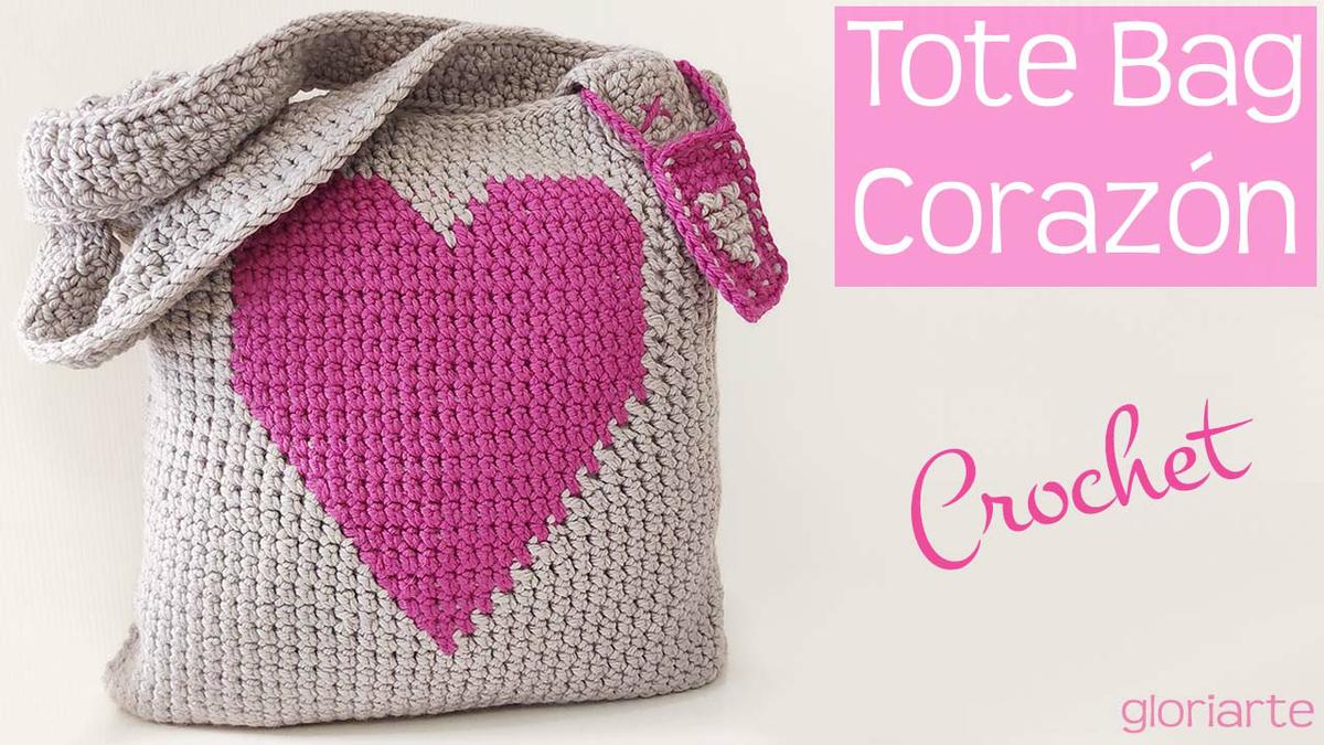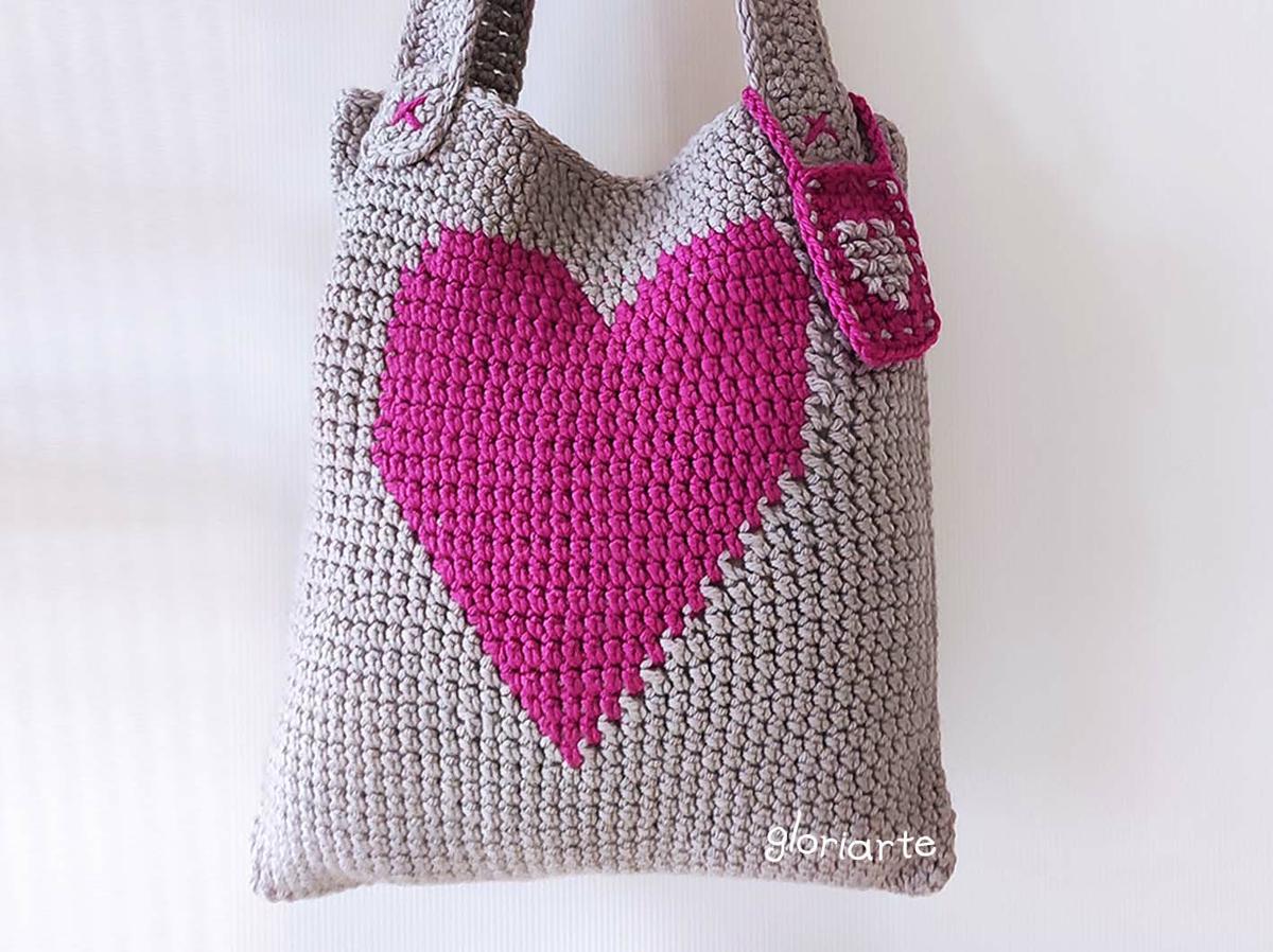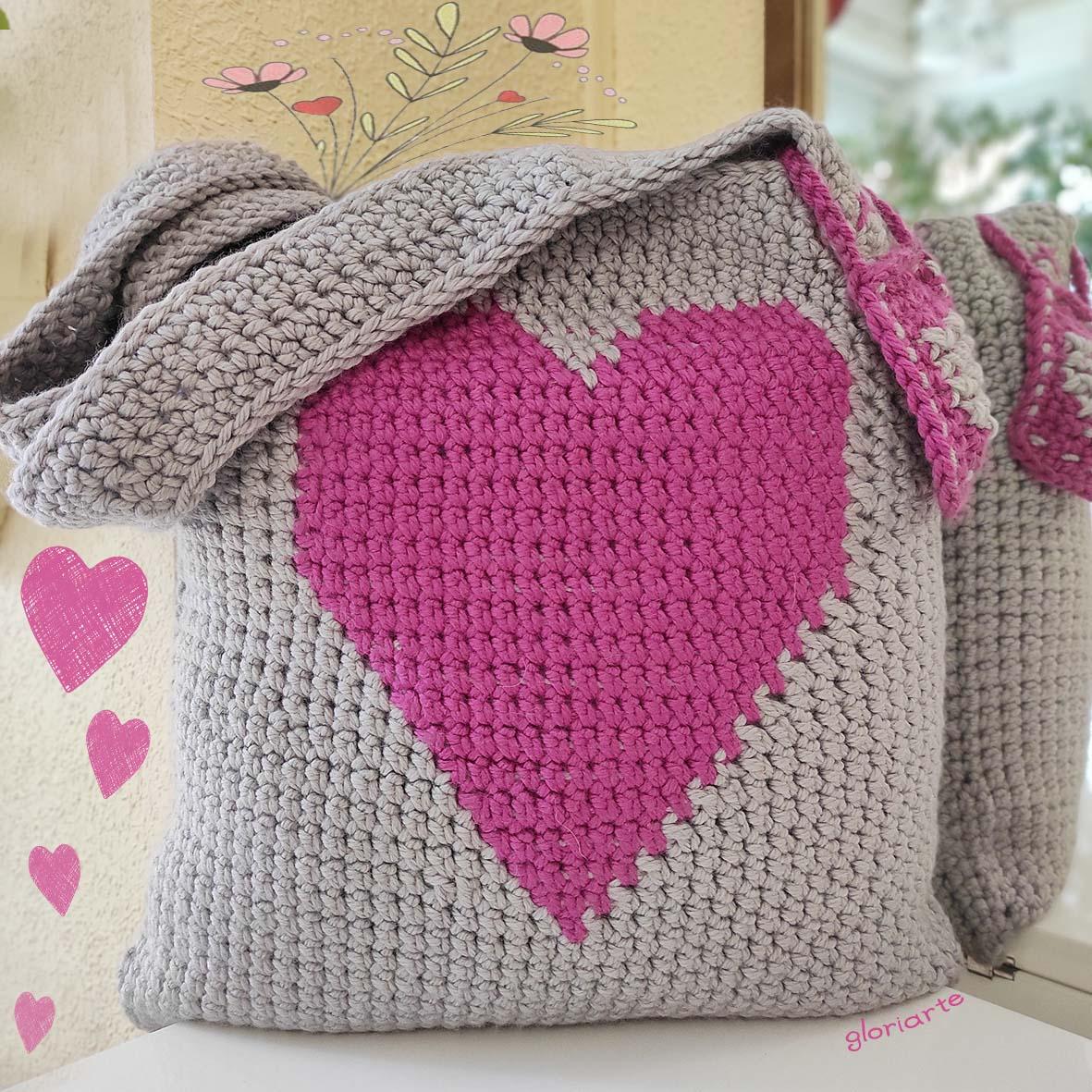 ¡Lo que me gusta a mí un corazón! Pues ala, uno bien grande en todo el medio de mi tote bag crochetera, jajaja. Para lucirlo y que se vea bien, oye
