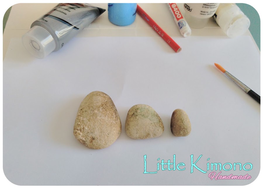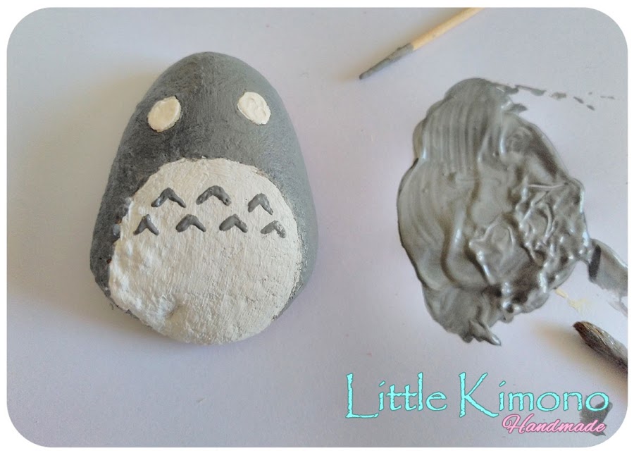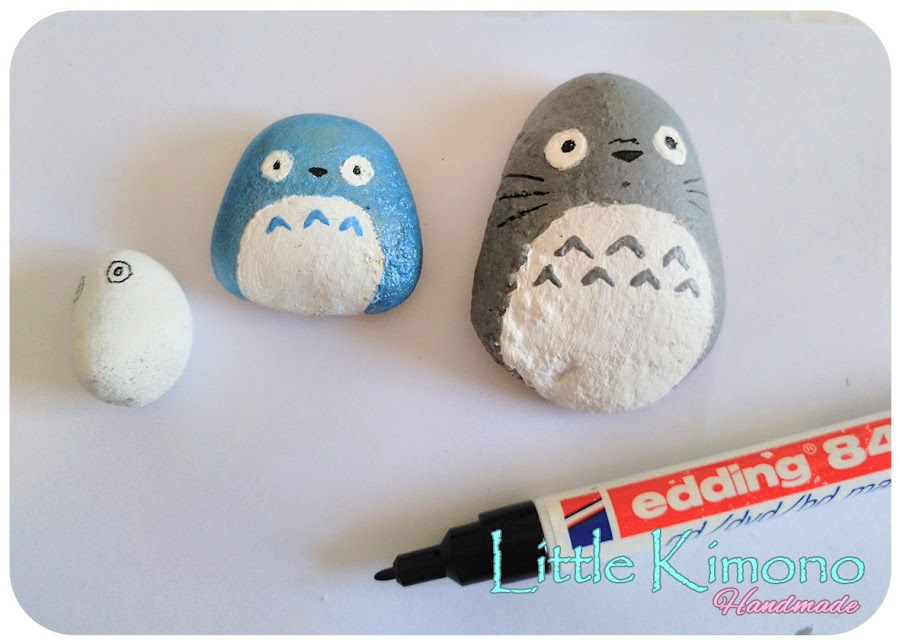 Lo primero era pintar las piedras con los colores de los Totoros, para quienes aún no sabéis de qué os hablo ^^ ...