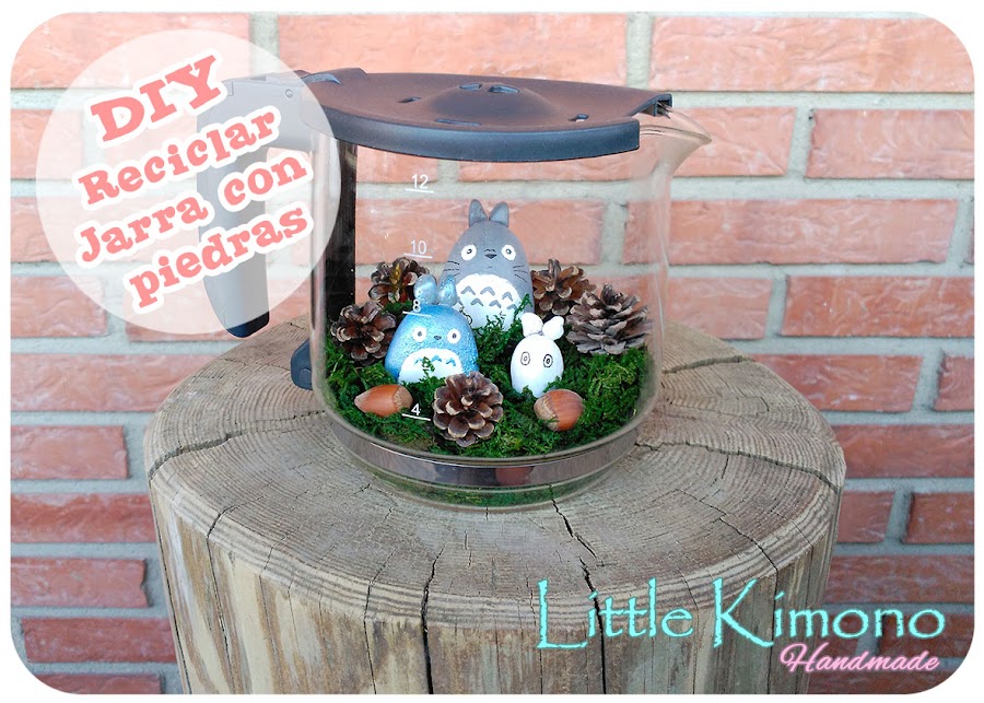 Así es!, este último post de Julio está dedicado al Reto Amistoso Nº103 que en esta ocasión organizaba Carla de Carla Artesanato y su propuesta para esta edición era "Reciclaje" así que me puse manos a la obra con este DIY que tenía ya ganas, pues las piedras las tenía ya escogidas desde primavera, en esos paseos por el pueblo ya sabéis que voy recolectando, cortezas caídas, hojas, piñas y piedras ^^ y tenía una jarra que quería convertir en una especie de "terrario" así que...