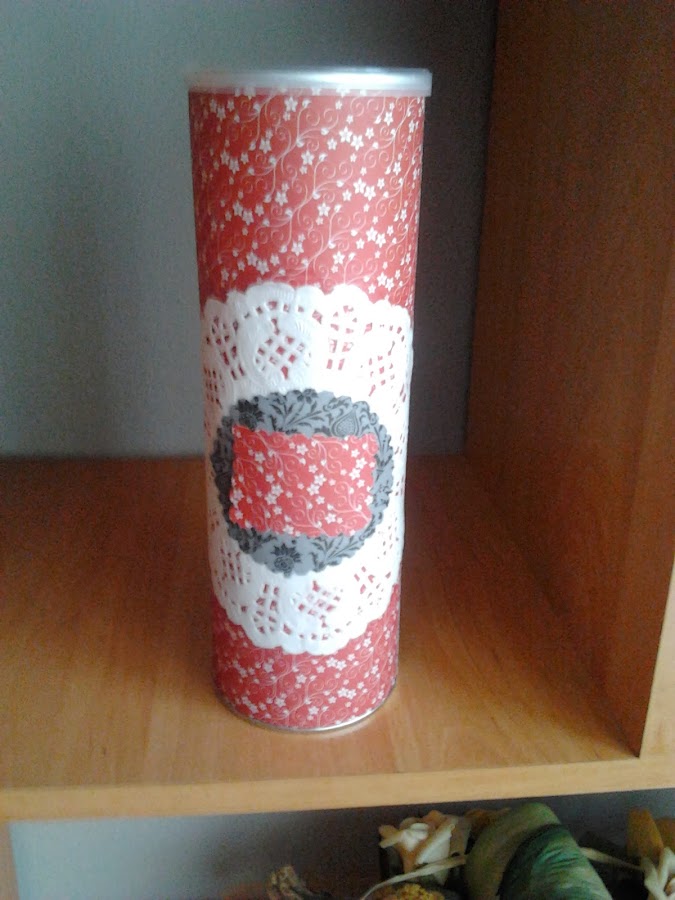 -Y para finalizar, un poco de scrapbooking. Reciclé un bote de patatas. Use papeles y troqueladoras.