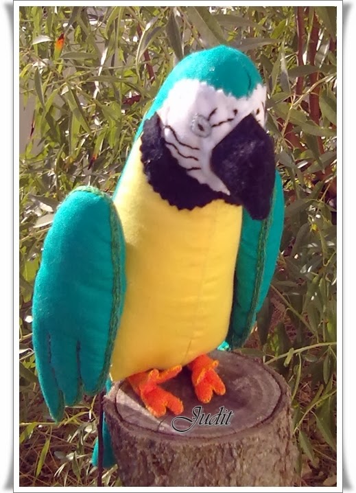 Y le llega el turno al loro. Un día mi hija me pidió uno para regalarle a una amiga. También gracias al foro del Facilísimo, encontré los patrones, aunque eran de una cacatúa tilda. Los transformé y así quedó: