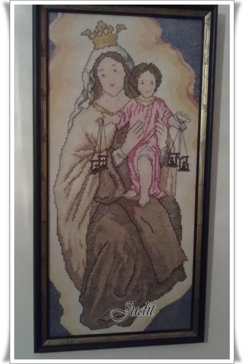 Mi suegra es devota de la Virgen del Carmen, y decidí regalarle un cuadro a punto de cruz con la imagen.Ella quedó encantada.