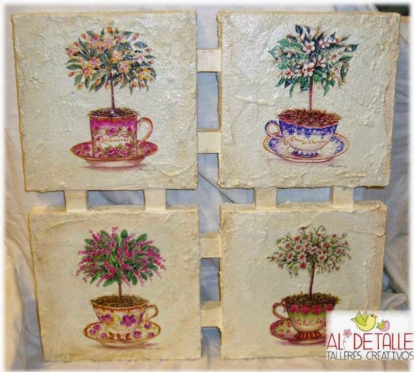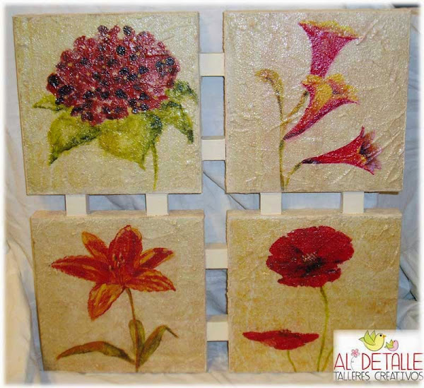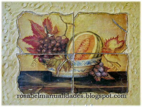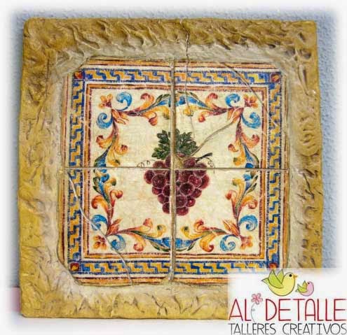 En este caso yo lo hice sobre pasta de papel, imitando unos azulejos antiguos, rotos.
