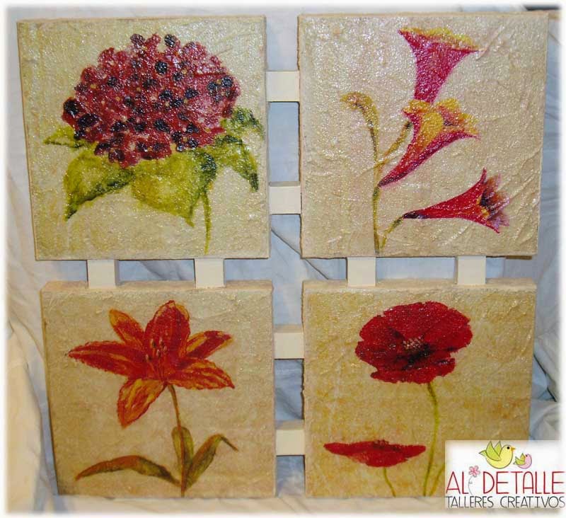 también lo podéis pegar sobre madera, sobre una textura rugosa, como en estos cuadros