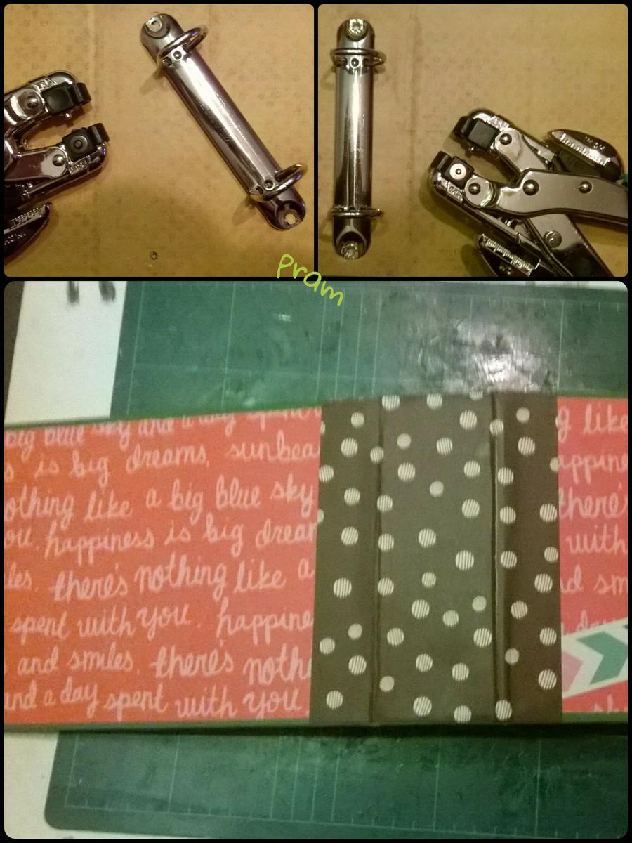 5. Un sistema de anillas reciclado de un bloc. (Tenía un par de dos blocs que utilicé para hacer álbumes), ojetes.