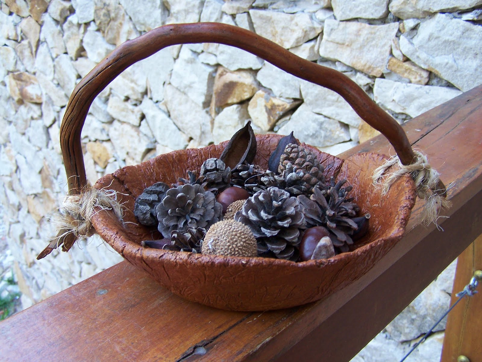 Cuenco con asa hecha con un tronquito e hilo sisal.