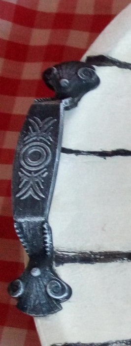 Protejo el trabajo con barniz mate y con silicona pego unas asas que previamente pinté de negro y con pincel seco le di toques en blanco.