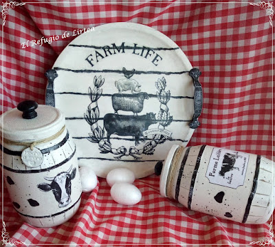 Este vez me sumo a uno de los temas propuestos para este mes, fue Cristina ( @criscreativedecor) quien propuso Deco Farmhouse y he reciclado unos botes de cristal y un plato pulpero intentando hacer una decoración en dicho estilo.