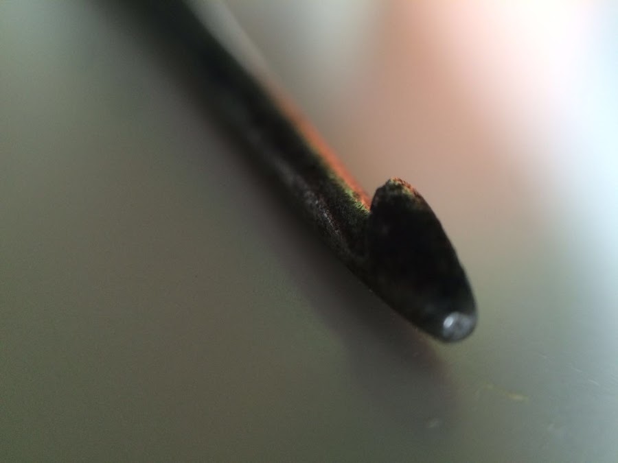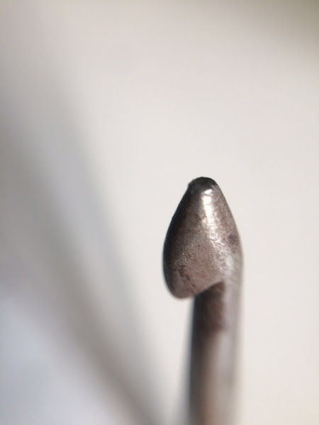Siempre me llamó la atención lo retorcida que estaba, y que fuera doble, por un lado tiene un gancho más grande, equivalente a un 4.5 más o menos y por el otro más pequeño que es como un 3.