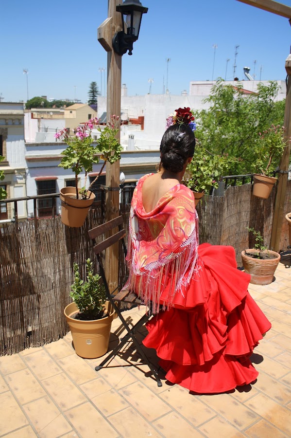 Hola!. Después de la semana de Feria , ya estoy de vuelta y os traigo con un post en el que os enseño el traje de flamenca que he hecho este año, ha sido el primer traje de flamenca que he cosido y la verdad que me ha encantado el resultado ya estoy pensando en como hacermelo el año que viene... jijijiji. El mantoncillo que os enseñé en el post anterior (me encanta como me ha quedado) me lo puse el miércoles de Feria y los que me seguís en instagram, me habéis podido ver algunas fotos con él. Estas fotos las hicimos el viernes antes de irnos para la Feria.