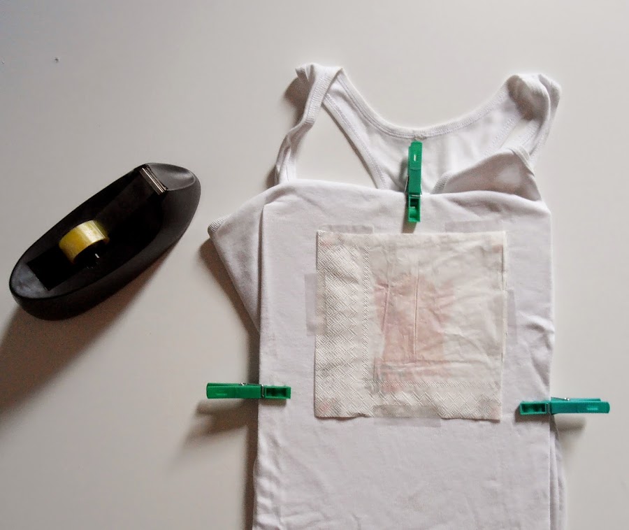 Introduje el cartón + el papel secante en la camiseta, la tensé