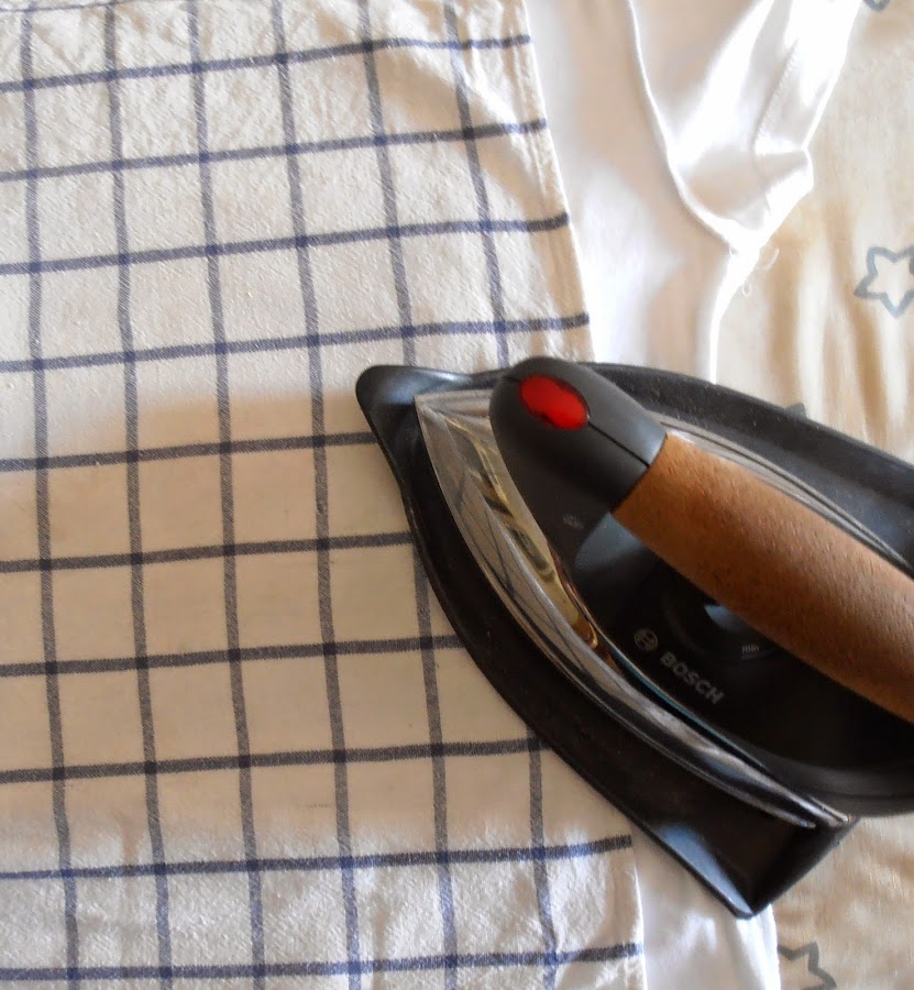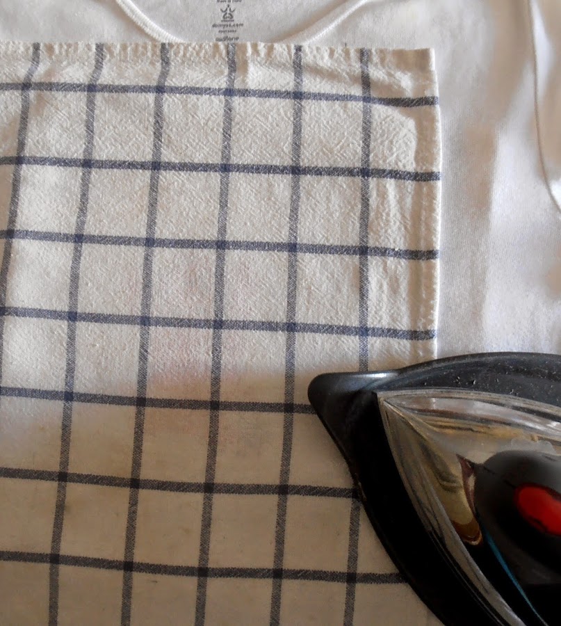 Con la camiseta del revés, colocamos un trapo de algodón,