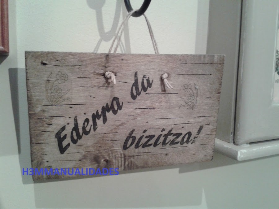 Pronto se me fue ocurriendo una bien sencilla, pero que tiene mucho fondo y hace ver las cosas con optimismo: "¡la vida es bella!". Para darle otro "sonido" se me ocurrió ponerla en euskera, nuestro idioma en el País Vasco. Y me decidí por "Ederra da bizitza!", que viene a significar lo mismo que la anterior en castellano.