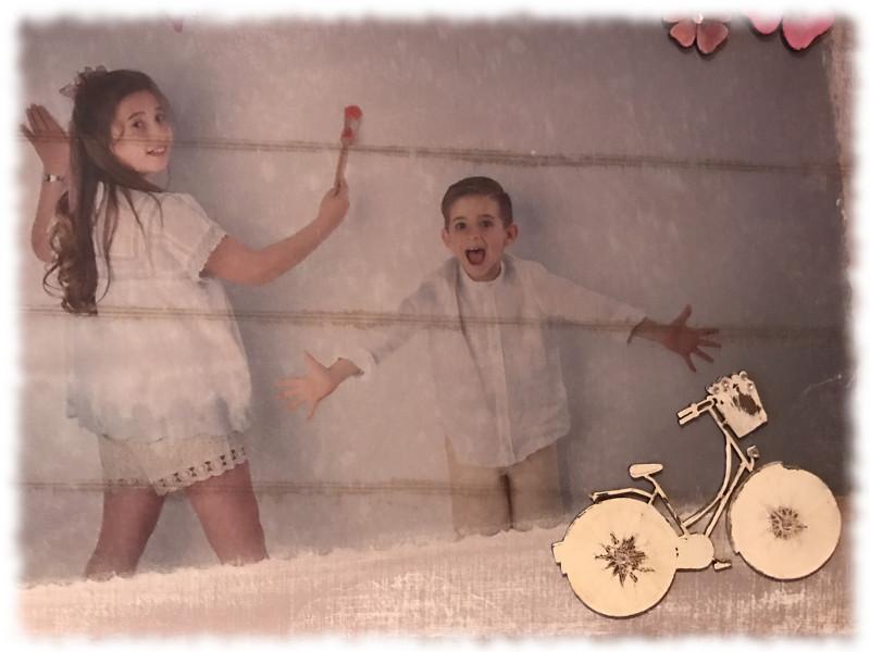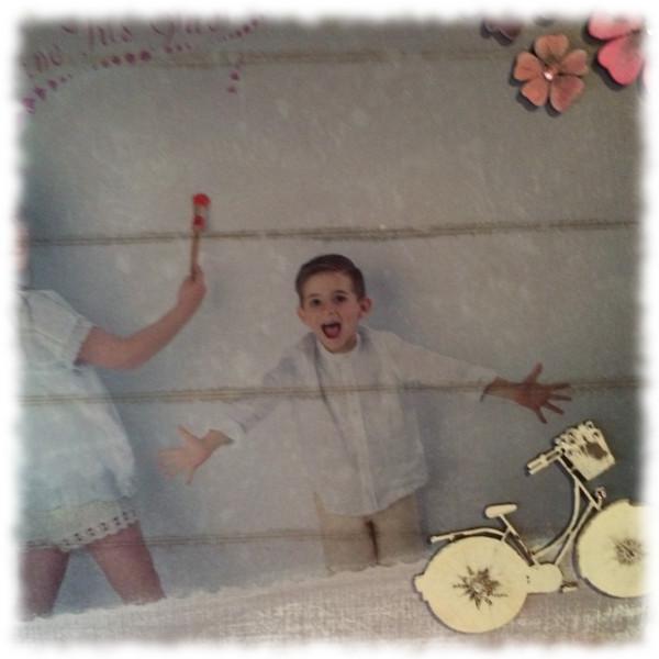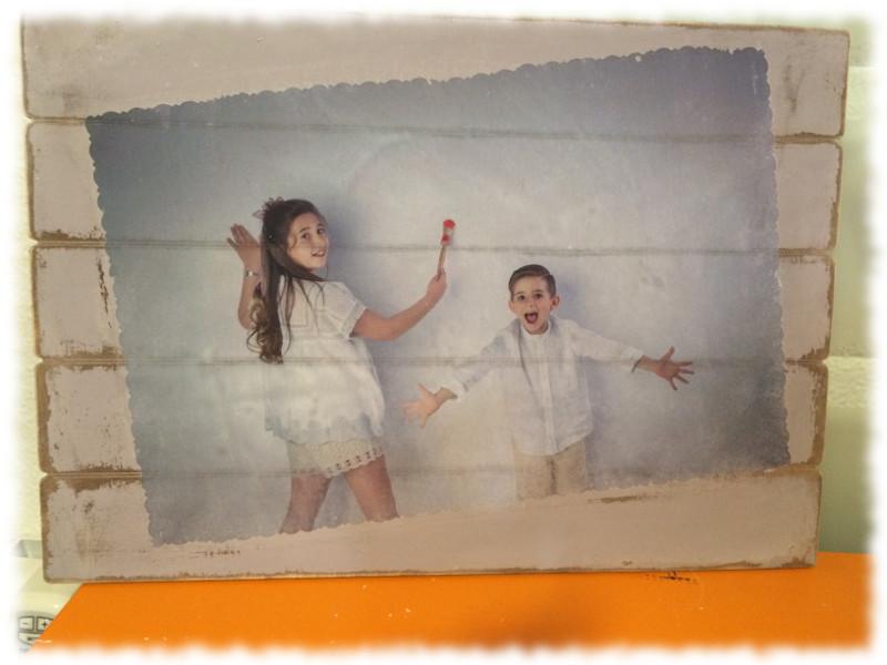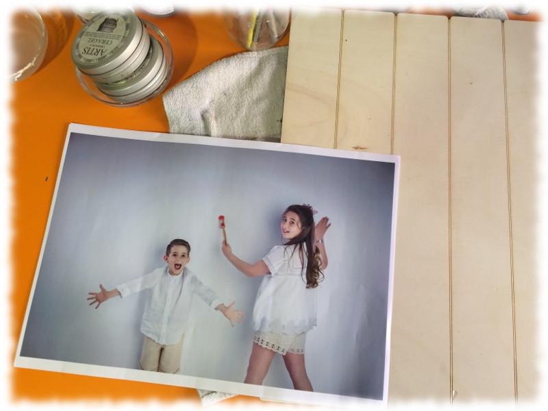 2. Elegimos las fotos a emplear para cada tablilla, y procedemos a imprimirlas “reflejadas”, tal y como os hemos indicado anteriormente. Es decir, si la niña se ve en la foto original orientada hacia la izquierda, la imprimimos reflejada, para que en la impresión salga orientada hacia la derecha. Posteriormente le practicamos unos recortes irregulares a lo largo de todo el contorno, para darle un aspecto más #Vintage.