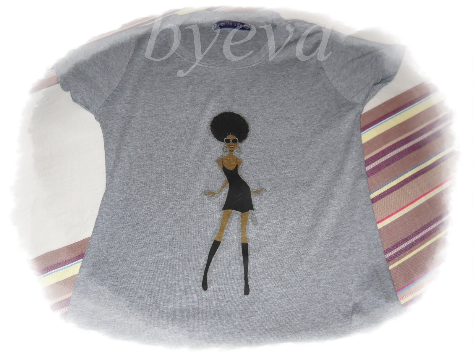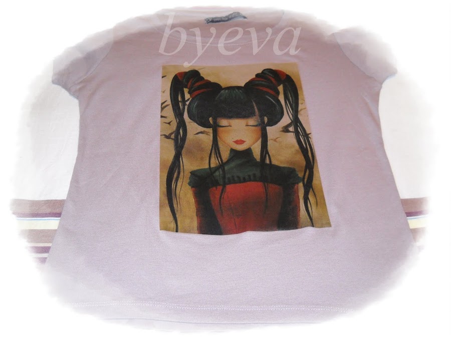 Compré unas camisetas lisas (que ya veo una y me empiezo a imaginar ¿qué le puedo hacer?), en la mia he puesto una Misstigri (que me encantan) y en la de mi hija una imagen de Jordi Labanda.