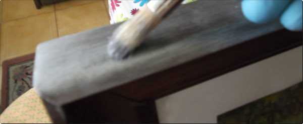 El resultado nos fue gustando, se quedaba un brillo plateado precioso y dejaba ver parte del color oscuro de base, como si fuese un ligerisimo decapado.Hay que darla rápida para que quede todo por igual y que no se queden "manchones"